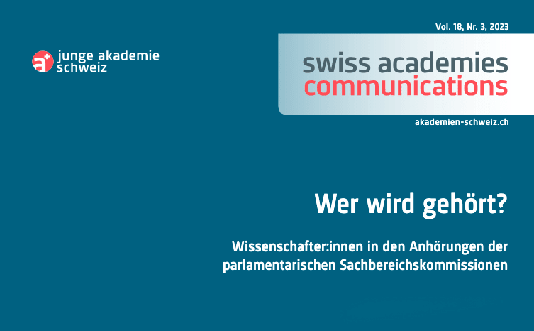 Dabei folgt die Publikation folgenden Leitfragen: Nach welchen Kriterien werden Wissenschafter:innen durch die Kommissionen eingeladen? Wie laufen diese Anhörungen ab? Weshalb wird die Wissenschaft in die parlamentarische Arbeit miteinbezogen? Was macht wissenschaftliche Expert:innen glaubwürdig? Wie stehen die Politiker:innen zu Wissenschafter:innen, die sich in politische Diskussionen einbringen? Und wie können Wissenschafter:innen ihre Expertise wirksam in die Kommissionen tragen?